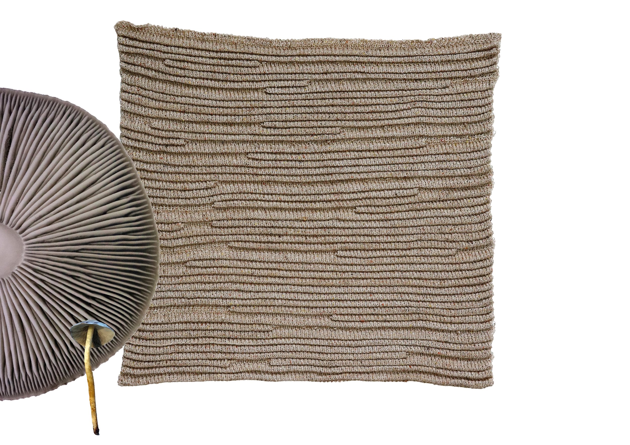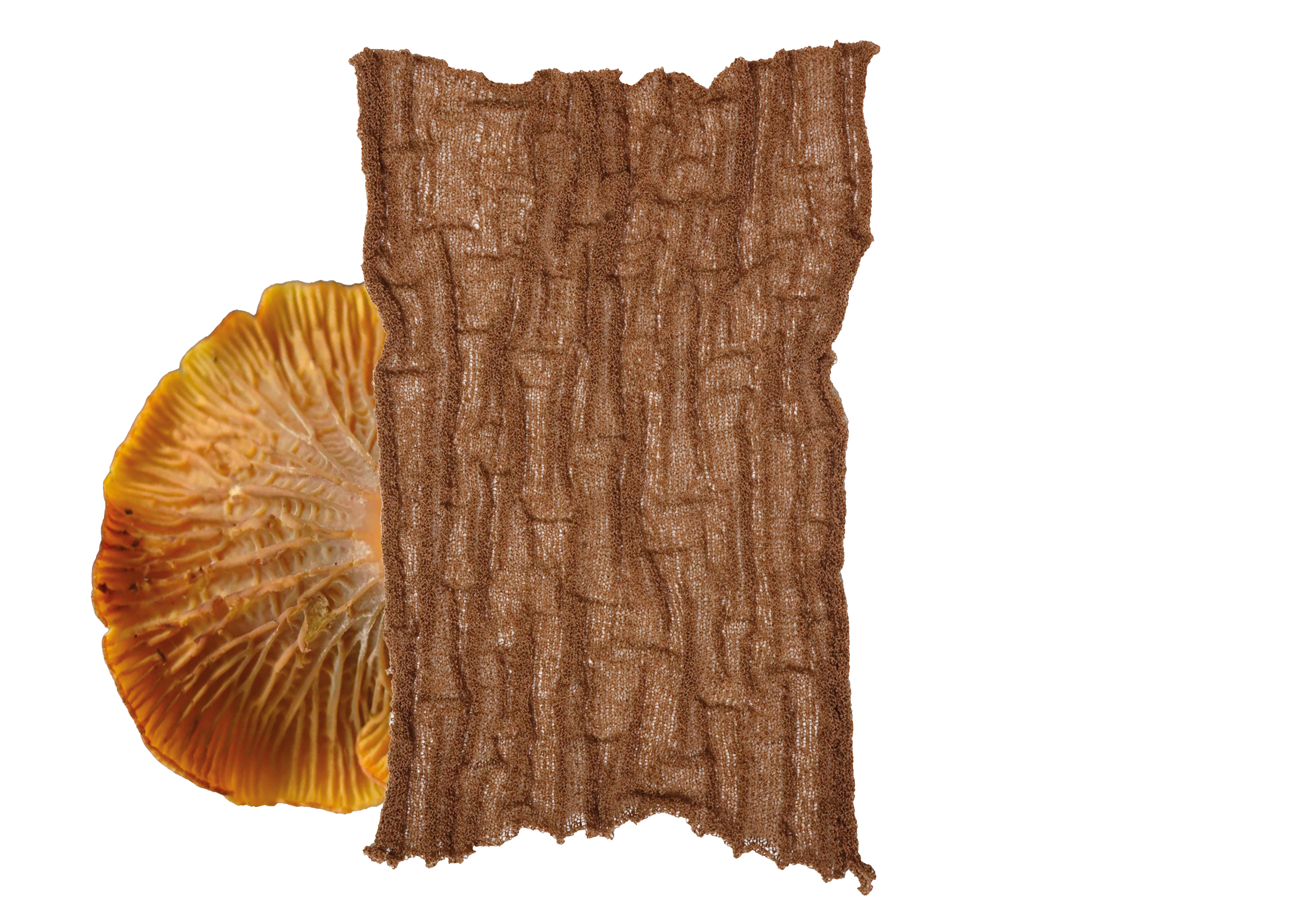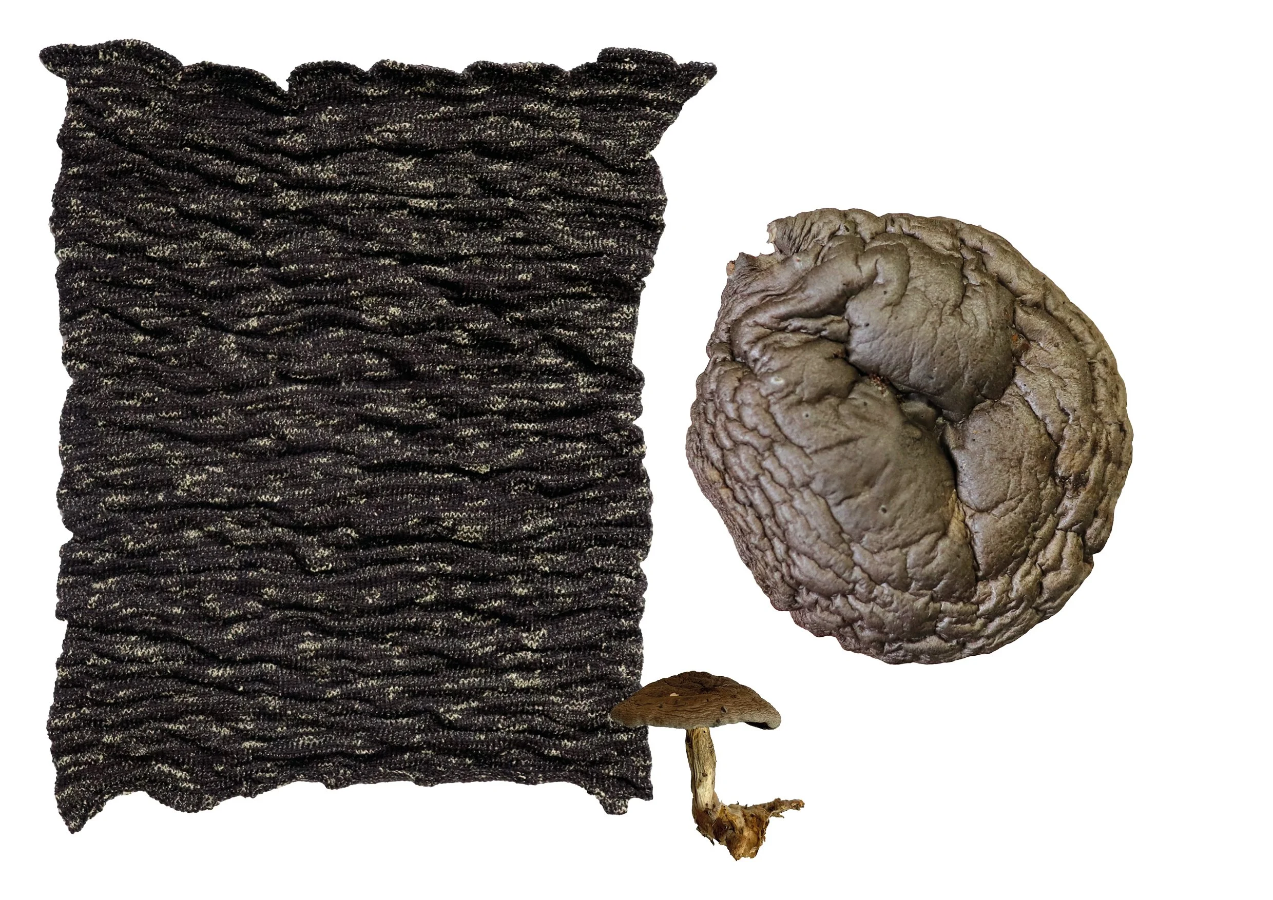 My goal was to translate the formal characteristics of mushrooms into knitwear using suitable knitting techniques and a refined choice of yarn. The central question was which knitting techniques, colors and materials are best suitable to translate the organic structures of mushrooms into textile surfaces.