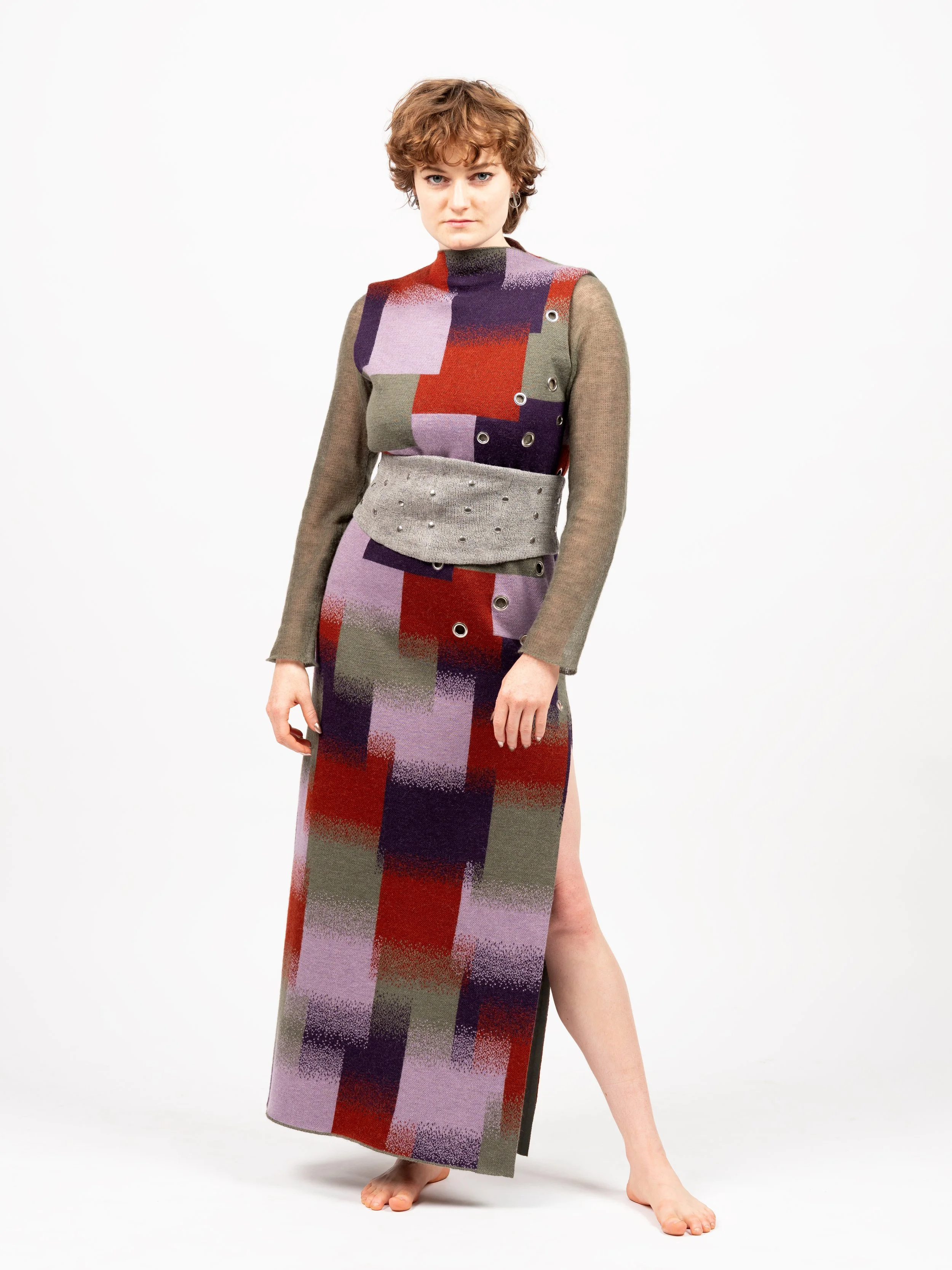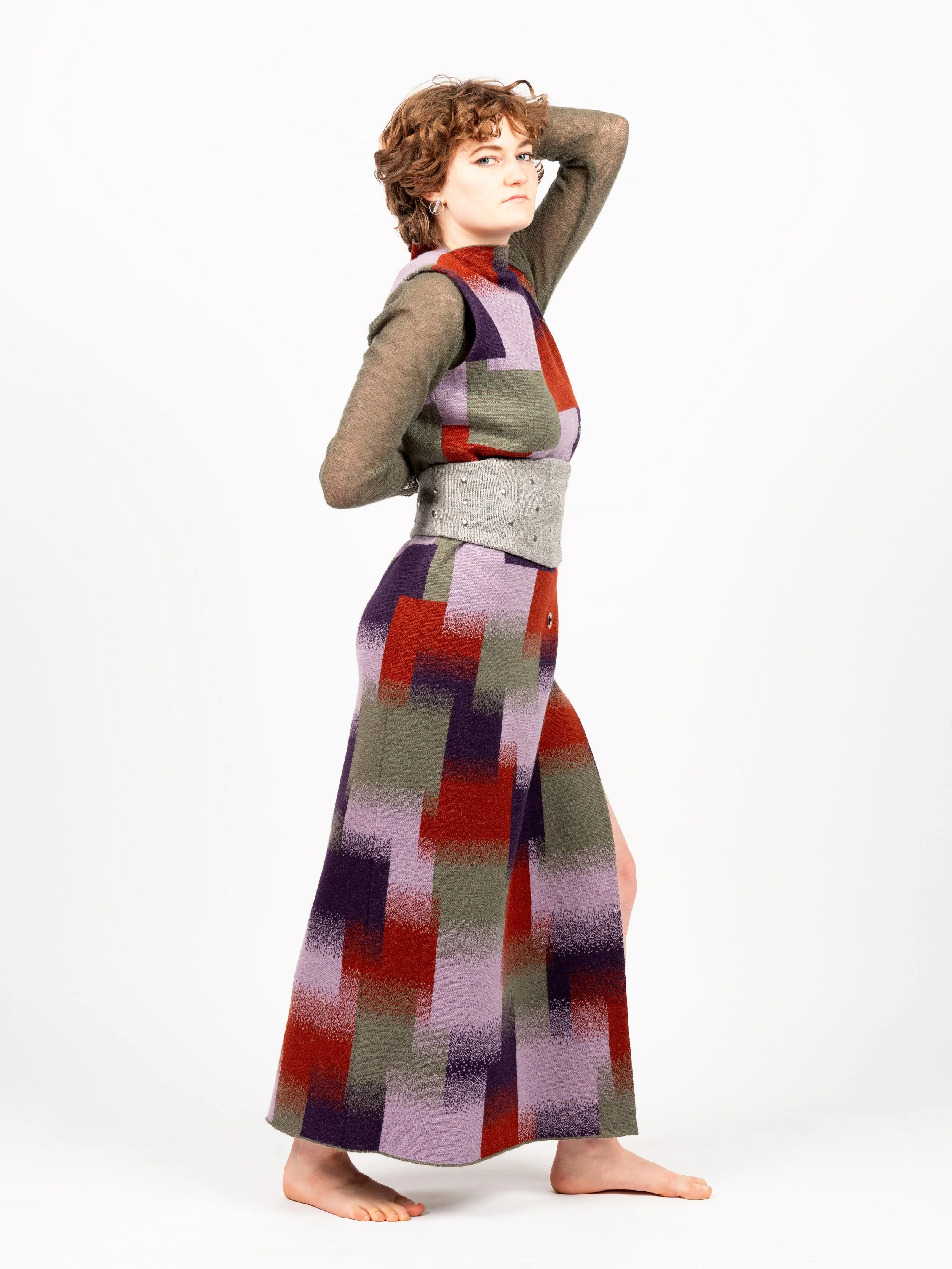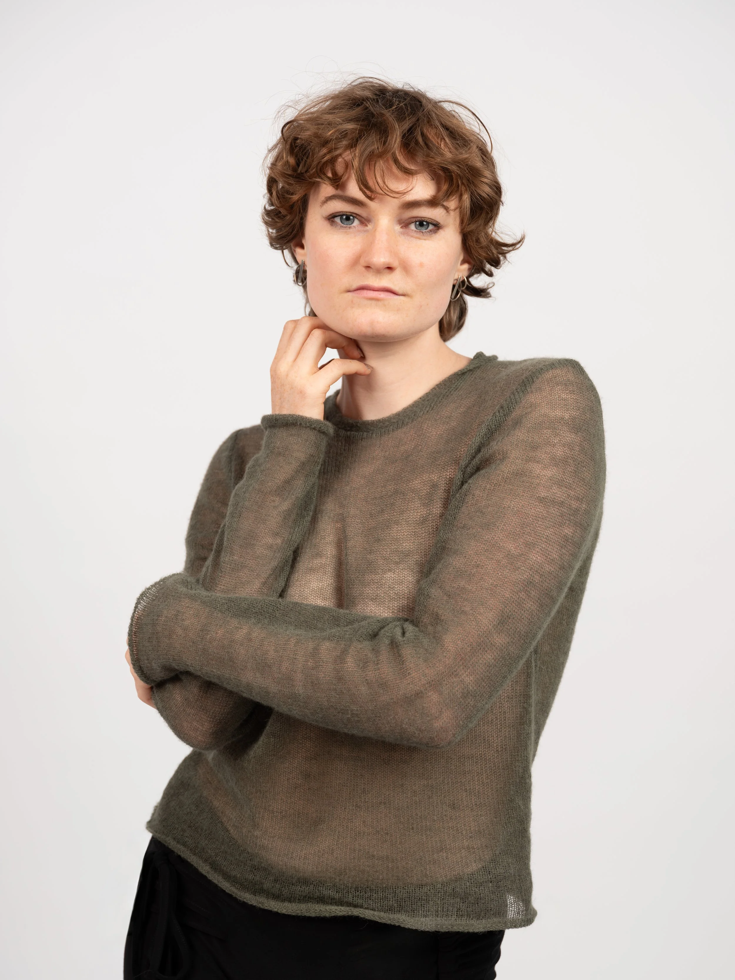 This contrast can be seen not only in the form language, but also in the choice of yarn. Thanks to the sponsored alpaca yarn from Filitaly-Lab, this contrast is particularly evident in the finely knitted top, which contrasts with the dense knit of the dress.